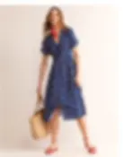 Boden Broderie Midi Tea Dress Navy RRP £155 D0870 Size UK 12R preloved A12